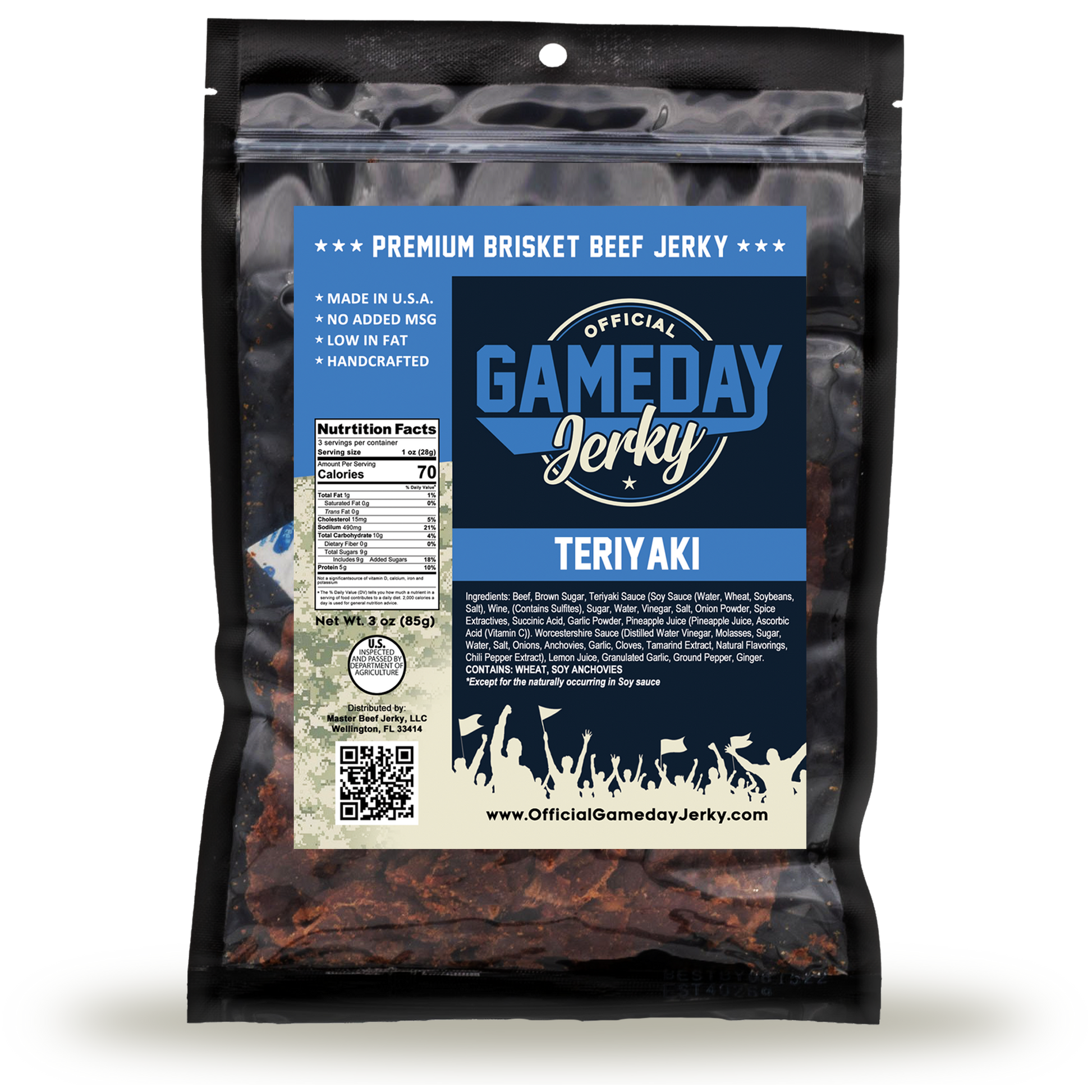 Indulge in the sweet and savory delight of “Western Teriyaki" Brisket Beef Jerky. Made with tender brisket marinated in an authentic teriyaki blend, it offers a harmonious fusion of soy sauce, ginger, garlic, and sweetness. Experience the smoky richness complemented by the delightful teriyaki flavors. Perfect for any occasion, take it on your adventures or enjoy it as a quick snack. Get ready for a taste sensation that will leave you wanting more.